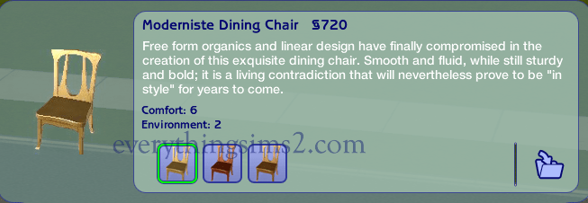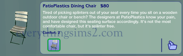 All items on this page are from the Sims 2 Base Game Catalogue only. To see other EP’s or to view by room or function click here.