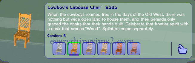 When the cowboys roamed free in the days of the Old West, there was nothing but wide open land to house them, and their behinds only graced the chairs that their hands built. Celebrate that frontier spirit with a chair that croons “Wood”. Splinters come separately.